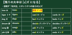 ・語尾が「有声音」とかいうやつの後ろは[z]ズ